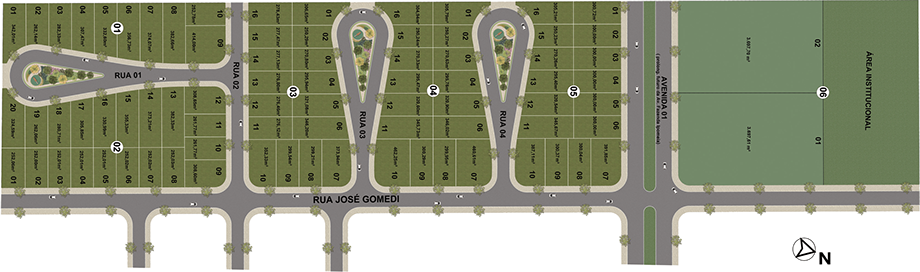 Infraestrutura: Rede de água potável, rede escoamento pluvial, esgotamento sanitário, Rede de energia elétrica com Iluminação Publica, asfalto, guias e sarjetas.